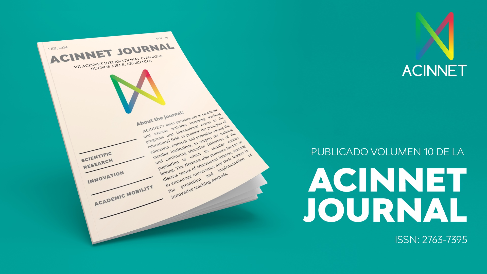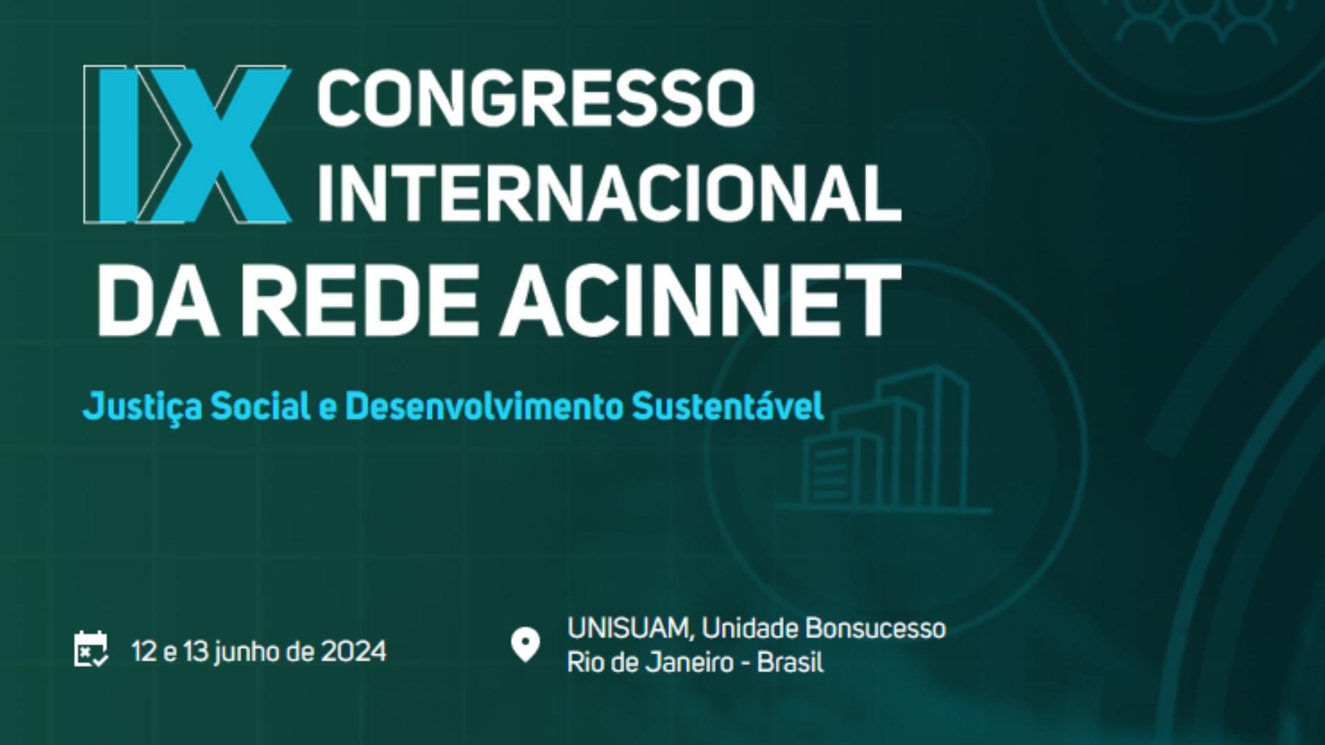 Se encuentra disponible para consulta el volumen 10 de la ACINNET Journal (ISSN: 2763-7395), publicado bajo el tema "Justicia social y desarrollo sostenible". Este número contiene los artículos científicos completos, seleccionados tras la evaluación del Comité Científico, que fueron presentados los días 12 y 13 de junio de 2024, en la UNISUAM (Brasil) durante el IX Congreso Internacional de la Red ACINNET.
