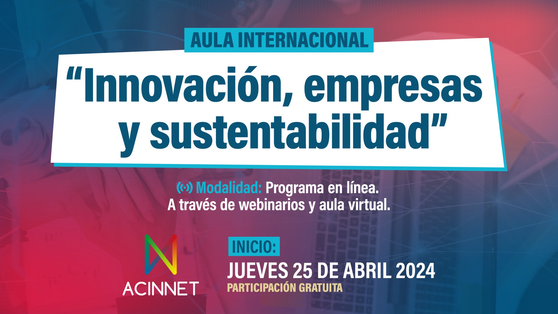 Con más de 500 participantes de Argentina, Brasil, Bolivia, Chile, España, México, Paraguay y Portugal dio inicio el proyecto educativo Aula Internacional: "Innovación, empresas y sustentabilidad", propuesto por la Academic International Network (ACINNET) como un espacio de formación y actualización en los principios y prácticas fundamentales de innovación empresarial y sustentabilidad.